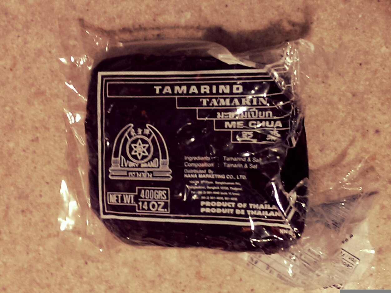 A block of tamarind pulp as you would find it at the grocery store. ( I took this photo after opening it. They don’t sell them already opened!)